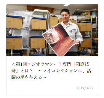 各メーカー様にて、新商品の撮影などで当社ジオラマシートを使用したい、というご要望がございましたら、お気軽にご相談ください。クレジットを記載して頂けるという場合でしたら、基本的に無償提供させて頂きます。(返却不要の無償進呈となります)