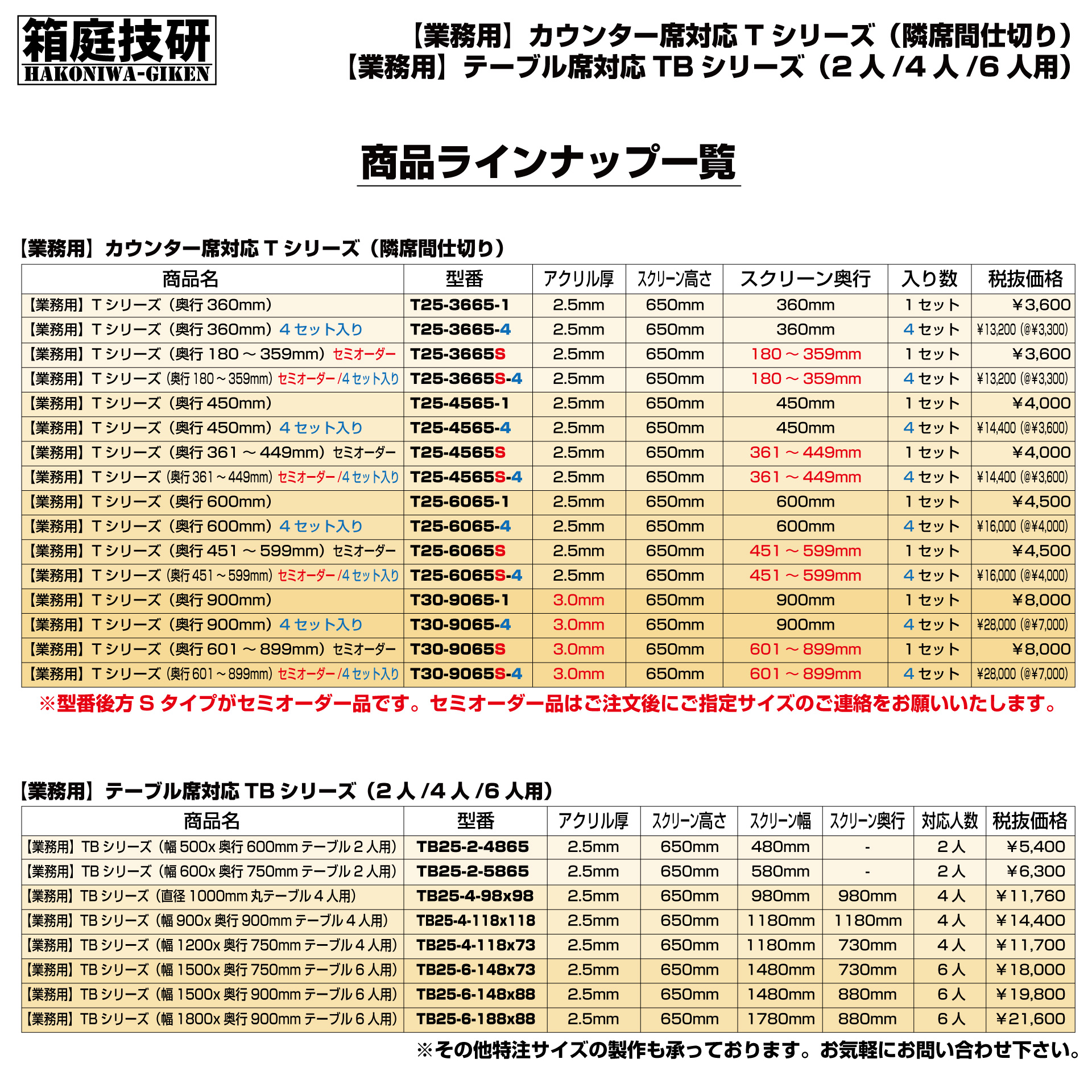 令和2年4月7日の新型コロナウイルス感染症緊急事態宣言直後より、国内でも飛沫防止アクリルスクリーンメーカーの先駆けとして、箱庭技研はこれまで2万セットを超える飛沫防止アクリルスクリーンをご提供させていただいております。これまで蓄積したノウハウとコスト削減努力の集大成として、新たな飲食店向け業務用飛沫防止アクリルスクリーンシリーズをリリースさせていただきます。