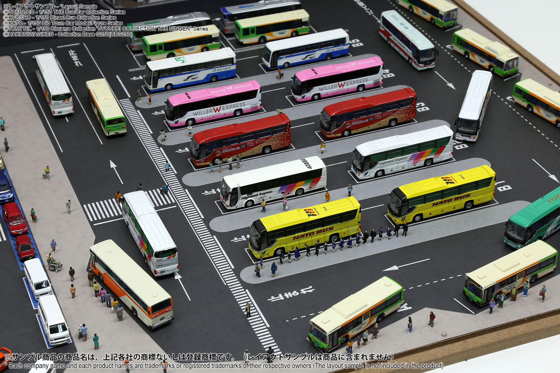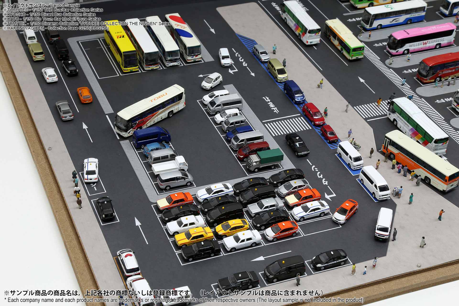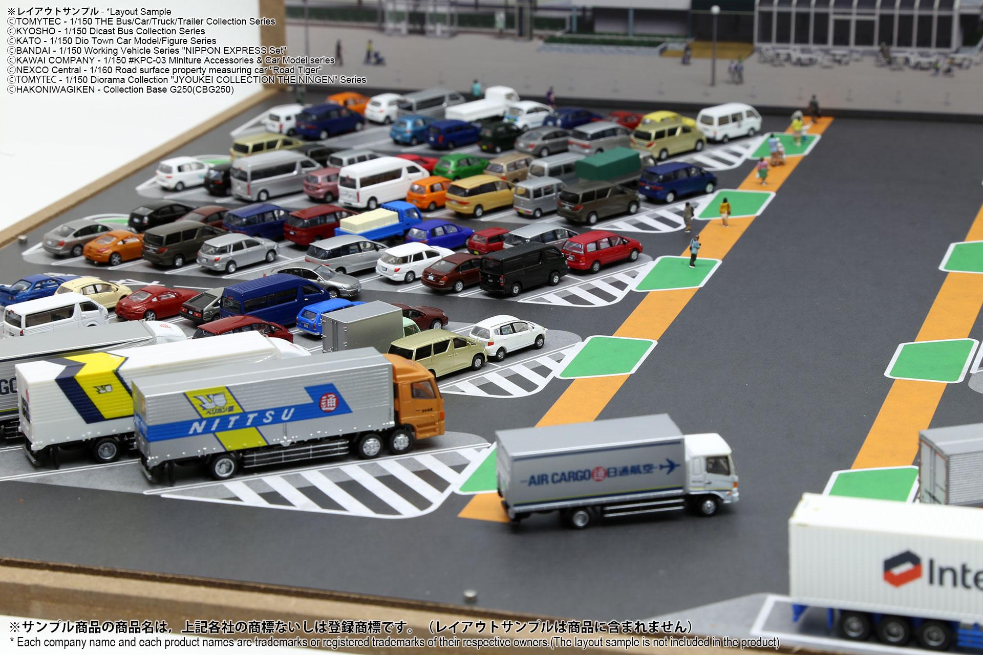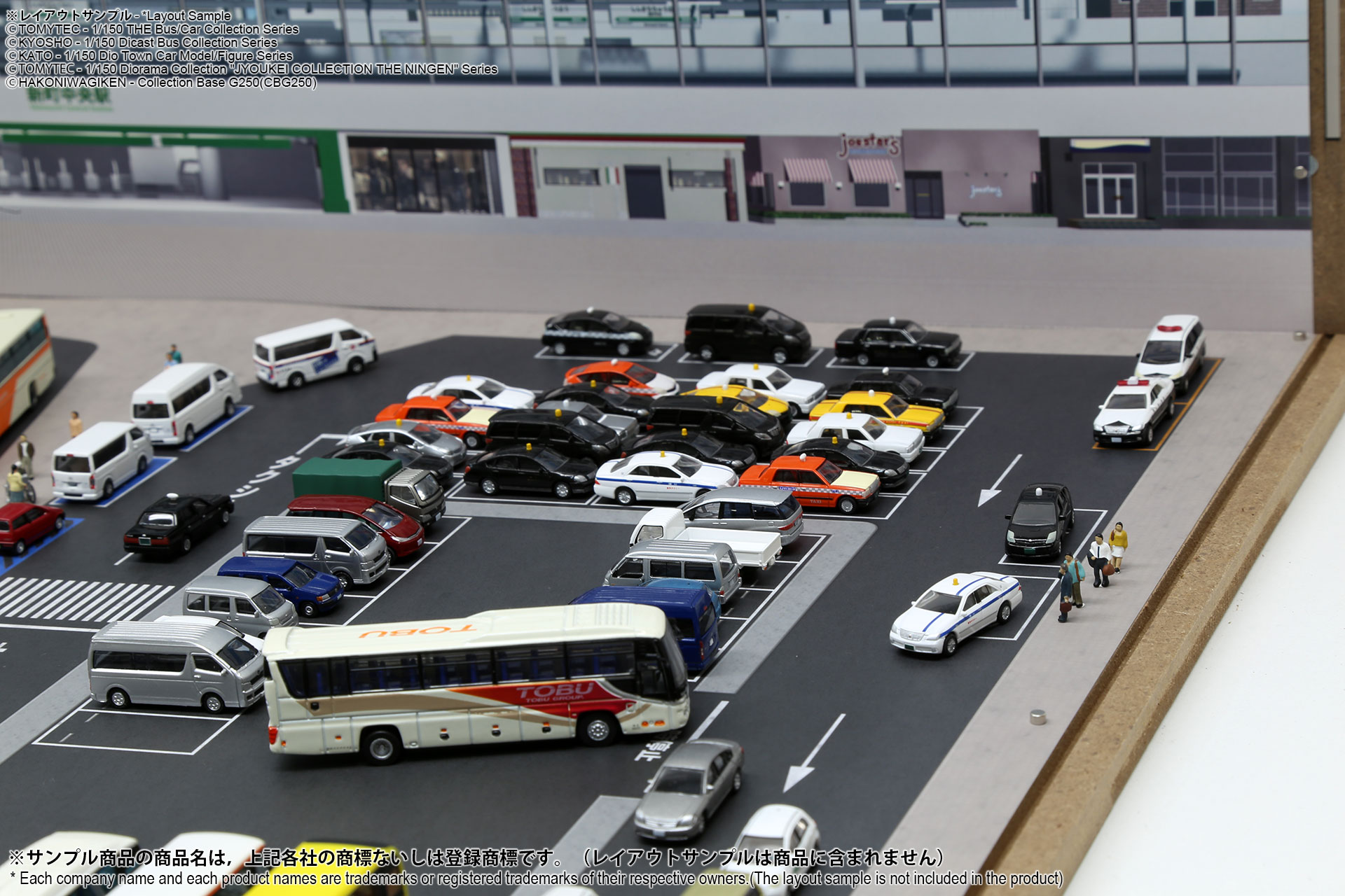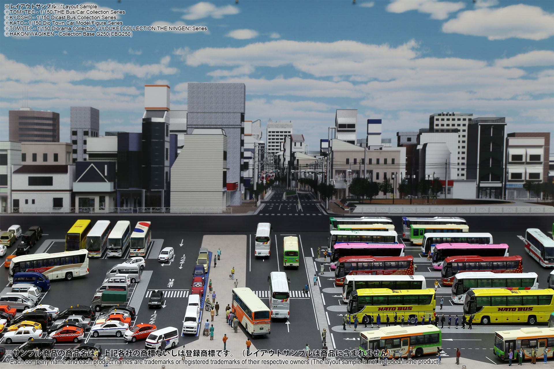 ベース表面は駅前ターミナル、ベース裏面はSA/PAの2パターンが印刷されたHGタイプのシート1枚と、前後2パターンの厚口マットコート紙タイプの背景シート4パターンが付属した1/150スケール対応のジオラマシートG250タイプです。ベースシートと背景シートの組み合わせで、4パターンからお好みで選んでご利用いただけます。ベースシートは耐久性向上と反射防止効果を備えたマットPPコーティングのHGタイプを採用しております。専用のコレクションベースG250に対応しますが、シート単独でもご自分で背景シートを固定することでご利用可能です。 |