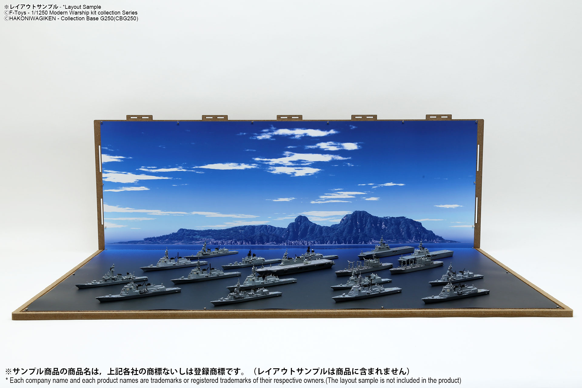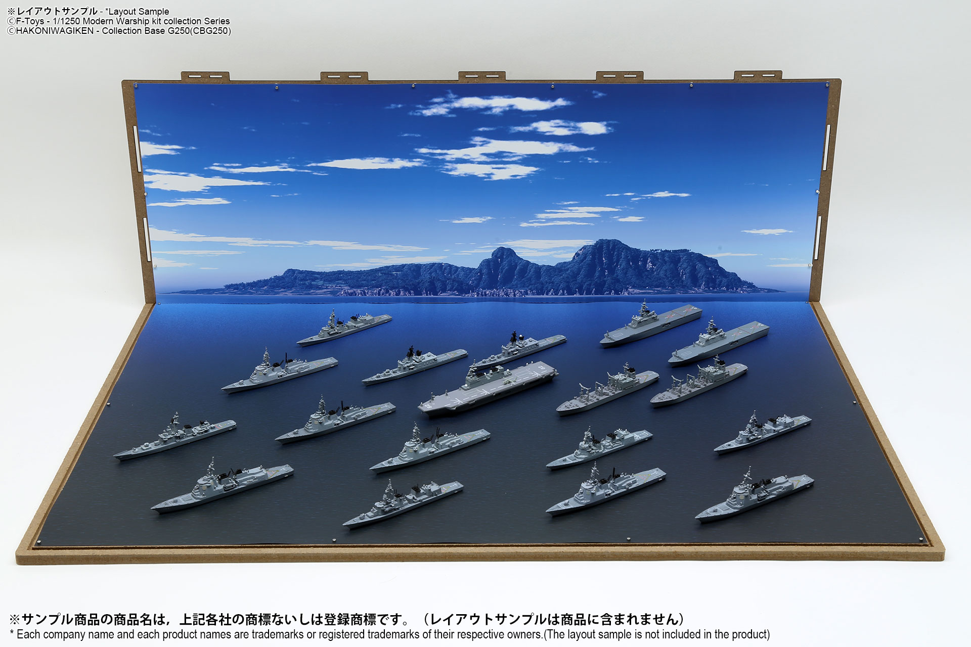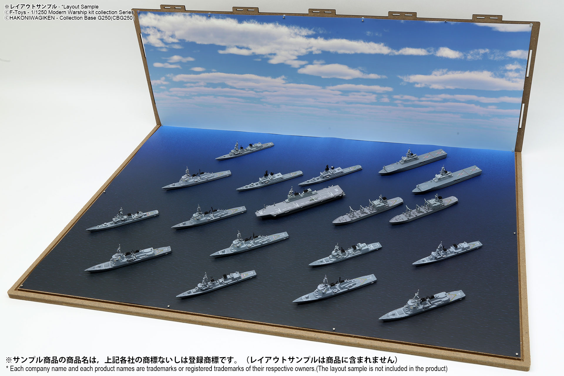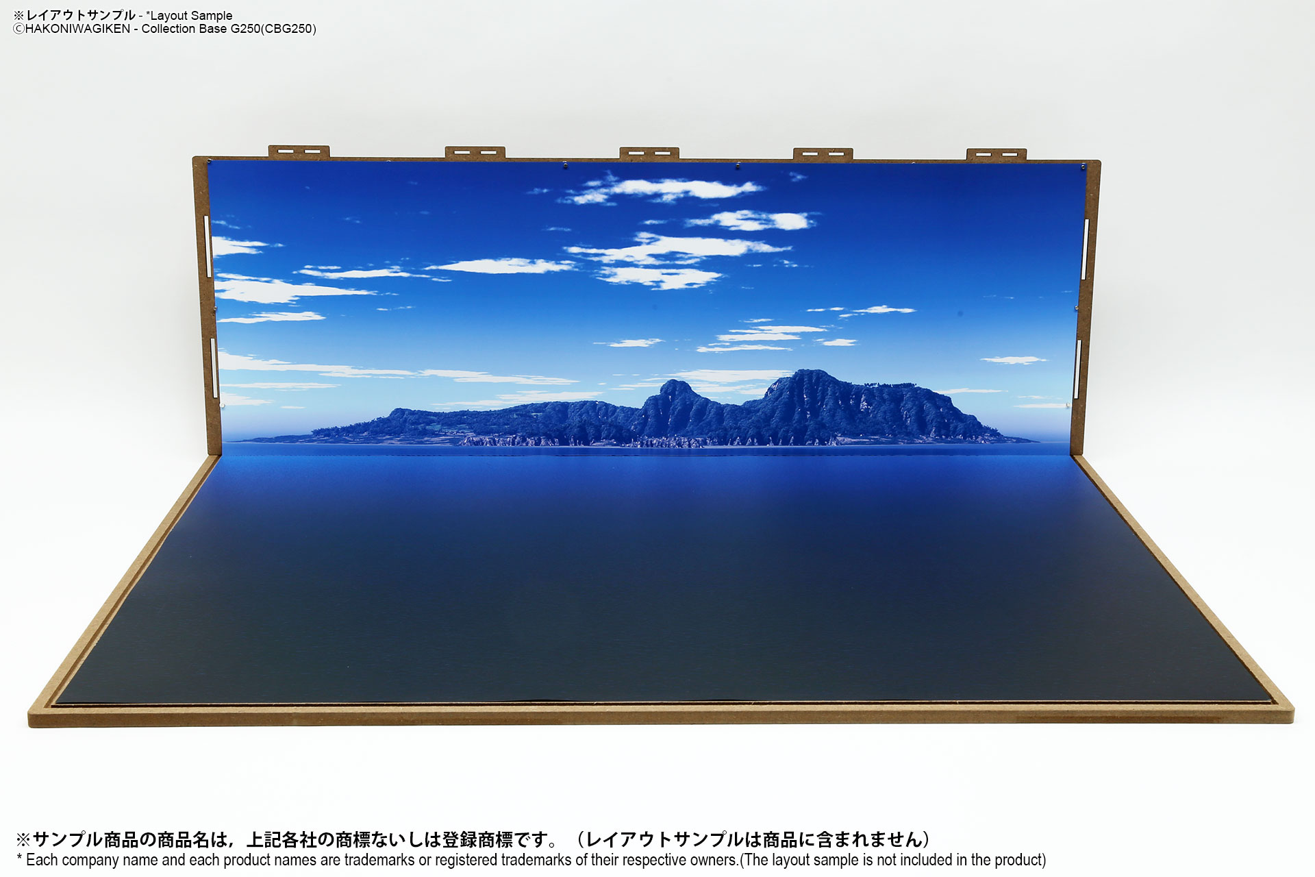 表面は海面ベース、裏面は背景2パターンが印刷されたシート2枚組のフリースケール対応ジオラマシートG250タイプです。背景2種類から選んで、2パターンでご利用可能です。耐久性向上と反射防止効果を備えたマットPPコーティングのHGタイプを採用しております。専用のコレクションベースG250に対応しますが、シート単独でもご自分で背景シートを固定することでご利用可能です。 |