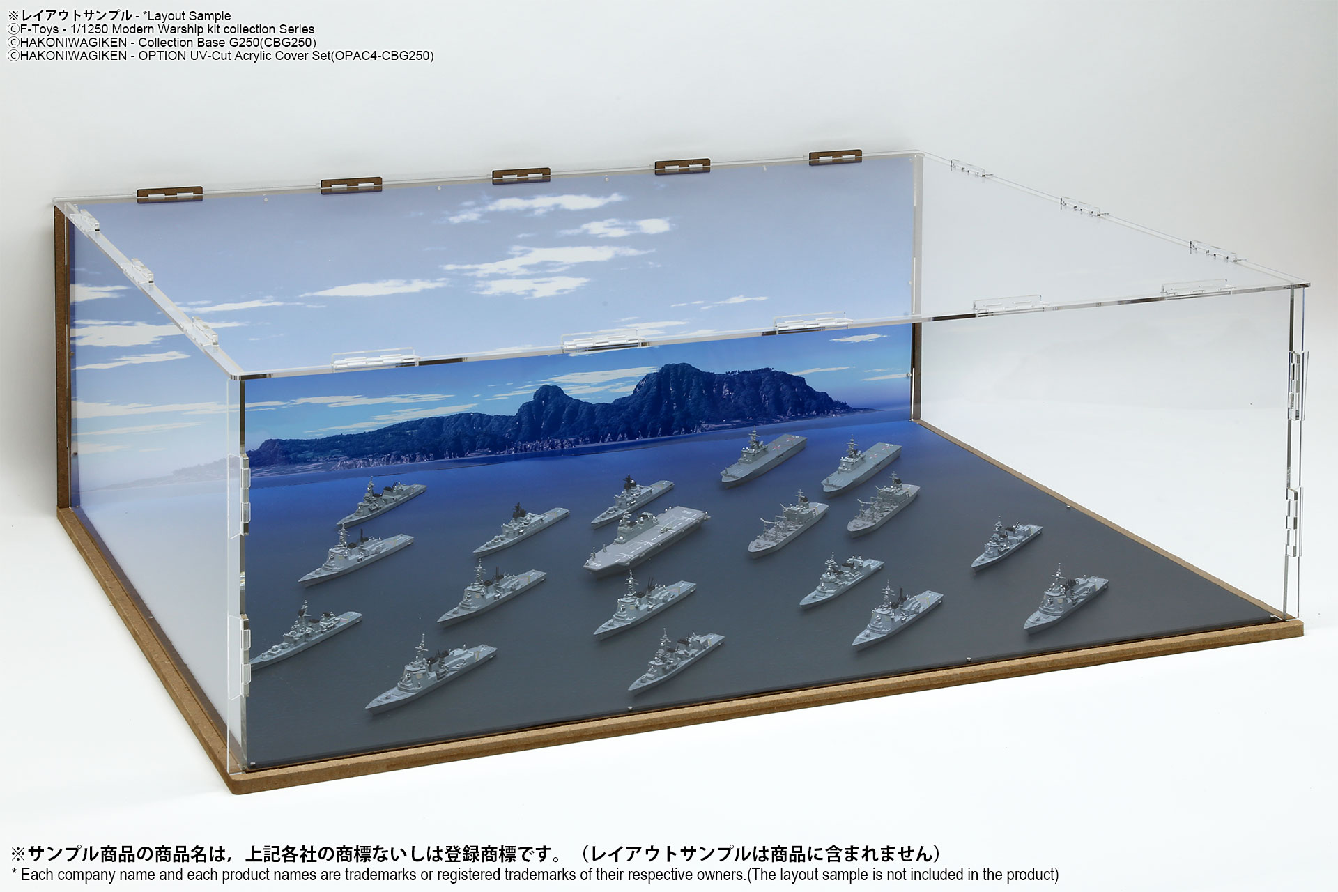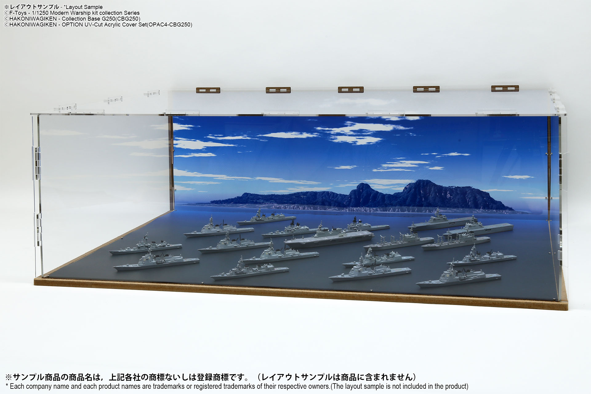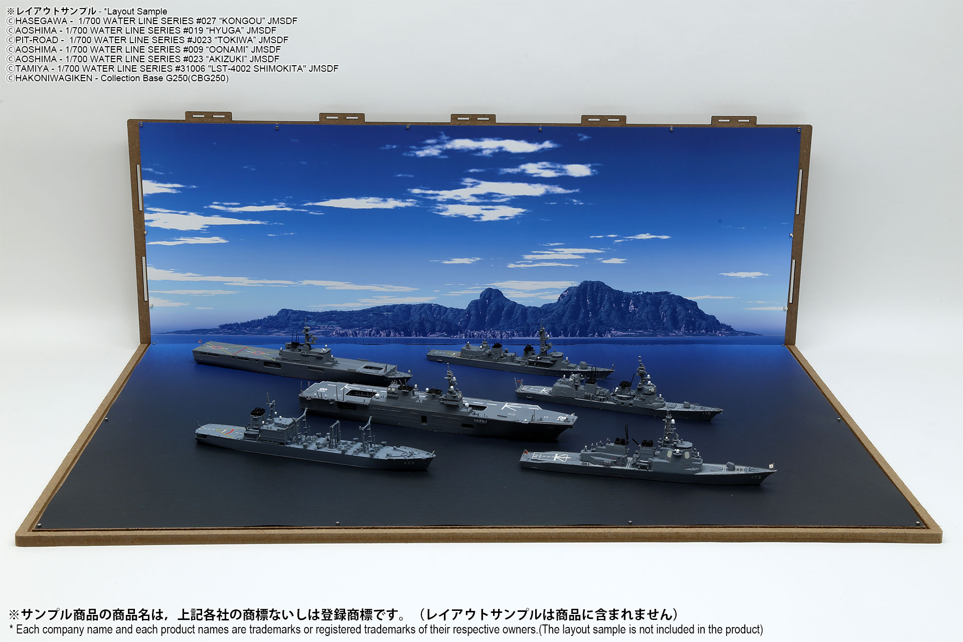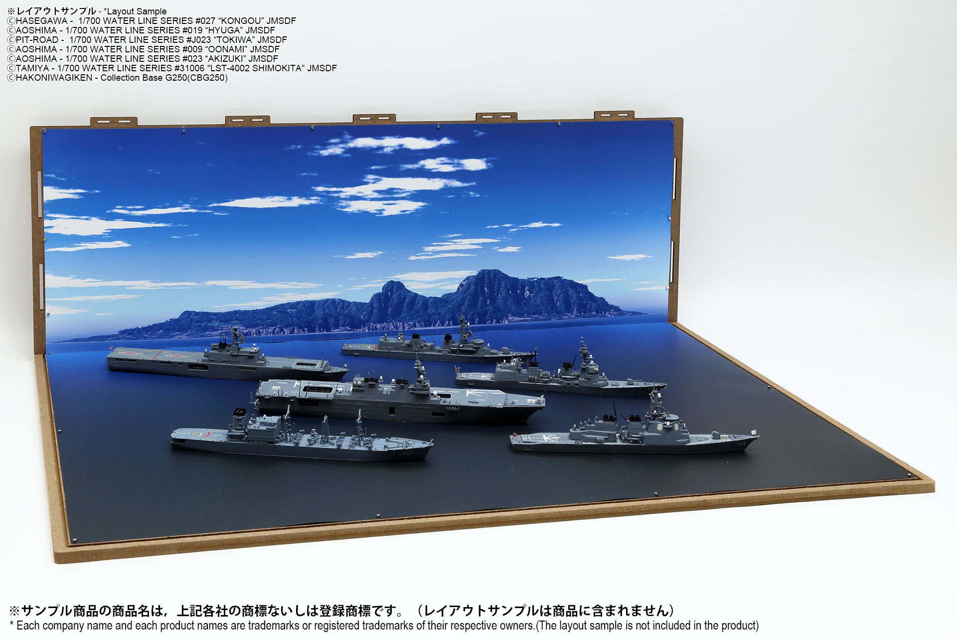 表面は海面ベース、裏面は背景2パターンが印刷されたシート2枚組のフリースケール対応ジオラマシートG250タイプです。背景2種類から選んで、2パターンでご利用可能です。耐久性向上と反射防止効果を備えたマットPPコーティングのHGタイプを採用しております。専用のコレクションベースG250に対応しますが、シート単独でもご自分で背景シートを固定することでご利用可能です。 |