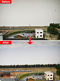 光の反射・テカりを極限まで抑えた無反射素材採用のジオラマシートPROシリーズ。鉄道模型用にとても好評だった山背景シリーズを繋ぎ目無しのジオラマシートPROシリーズでリリース致します。高精細印刷で、とっておきのジオラマレイアウトが実車のようにリアルな空間に変わります。素材は樹脂製の合成紙で耐水性がありますので、湿気による波状変形もほとんどありません。耐久性のある溶剤インクは紫外線にも強く、3年間の屋外使用環境下でも色あせや劣化に強い対候性を誇ります。(本シートの素材は無反射仕様のため特殊なインク受理層を有しますので、水のかかるような場所でのご使用は避けてください)シート端の保護並びに画鋲やテープでの固定用に周囲に余白がございます。