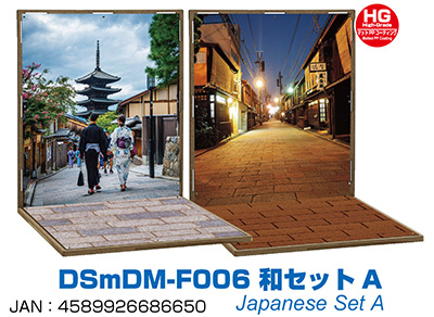 コレクションベースDMシリーズで利用可能な和セットAです。目安としておよそ1/8〜1/6サイズのフィギュアでお楽しみいただけます。対応ベースは別売となります。背景シートは両面厚口印刷のマットPPコーティングが施されたHG(High Grade)タイプで、背景とベース各2パターンでお楽しみいただけます。コレクションベースに付属の極小固定マグネットを利用して、簡単に設置が可能です。お気に入りのシーンが完成したら、別売のUVカットアクリルカバーで紫外線・ホコリから展示物を守る高機能なディスプレイケースへ発展可能です。 |