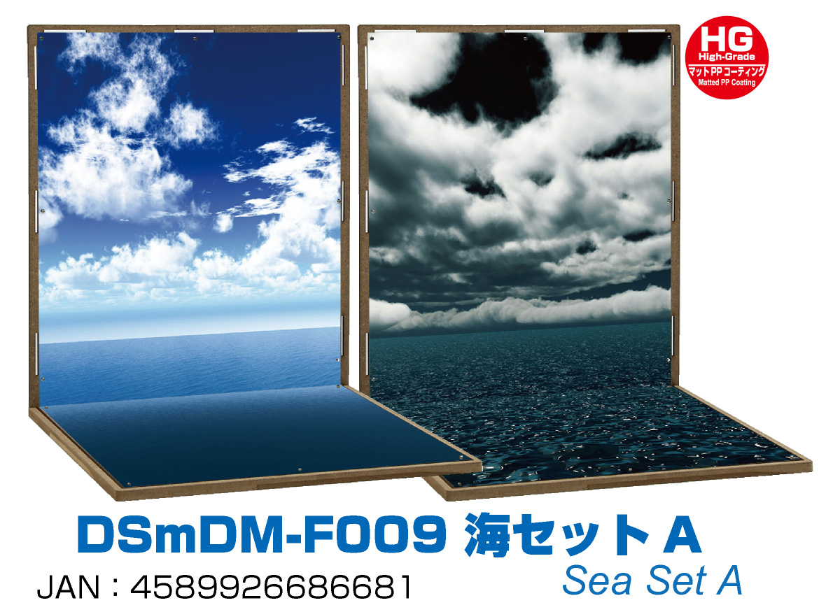 コレクションベースDMシリーズで利用可能な海セットAです。目安としておよそ1/8〜1/6サイズのフィギュアでお楽しみいただけます。対応ベースは別売となります。背景シートは両面厚口印刷のマットPPコーティングが施されたHG(High Grade)タイプで、背景とベース各2パターンでお楽しみいただけます。コレクションベースに付属の極小固定マグネットを利用して、簡単に設置が可能です。お気に入りのシーンが完成したら、別売のUVカットアクリルカバーで紫外線・ホコリから展示物を守る高機能なディスプレイケースへ発展可能です。 |