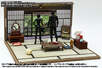 老舗旅館のような和室、そして一般的な家庭の和室をイメージしたジオラマシートです。およそ1/12程度のサイズに合うようにデザインしておりますが、1/10〜1/18程度の各社フィギュアでお楽しみいただけます。