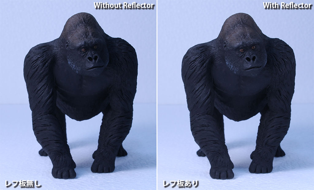 レフ板もデフューザーと同様「コントラストを抑えて被写体をより見やすく引き立たせる」という利点は同じです。人間の目で認識できる影の部分のディテールが、ダイナミックレンジの低いカメラでは黒くつぶれてしまいがちな弱点を補う効果があります。これが結果としてパッと見でクォリティの高い写真か低い写真か、という印象の違いにつながります。ここでご紹介したように、デフューザーとレフ板のどちらも身の回りの簡単に手に入るアイテムを利用して用意できます。ちょっとした作業で写真の印象が大きく変わる場面も多いので、撮影の際にはぜひご活用ください。 |